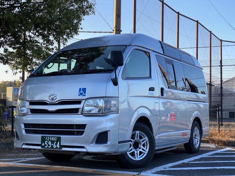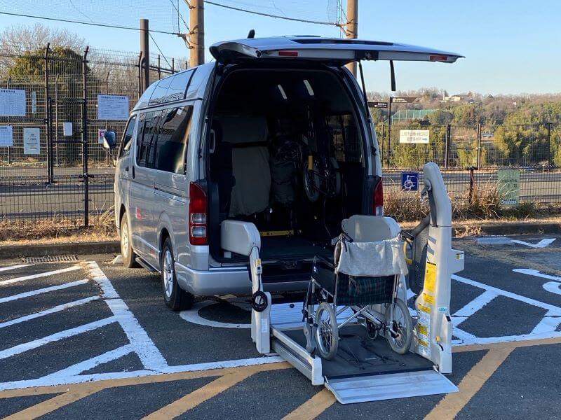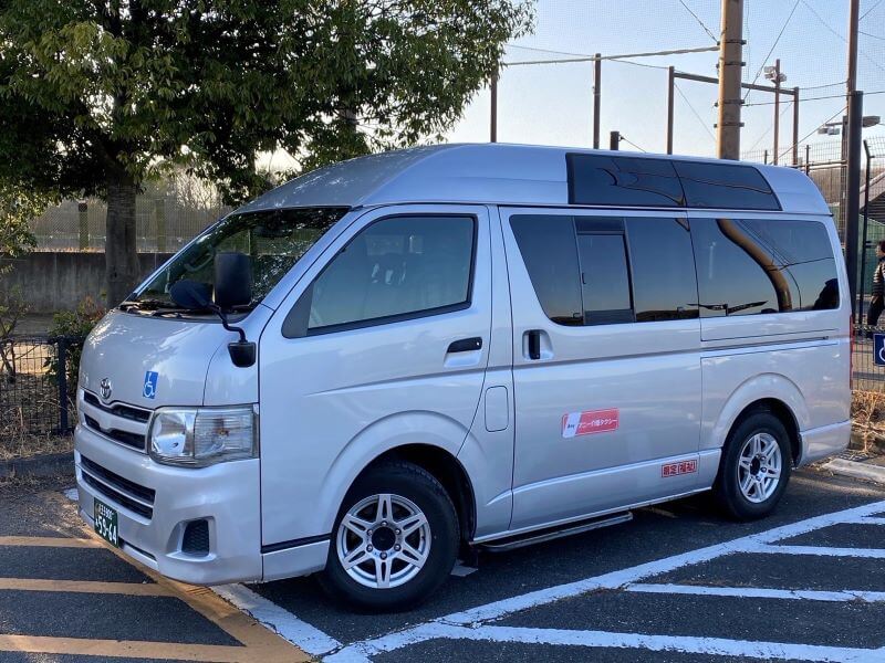 ベテラン女性ドライバーの介護タクシーです!車いすに乗ったまま乗り降り自由。お一人での利用はもちろん、付添いの方も同乗可能です。